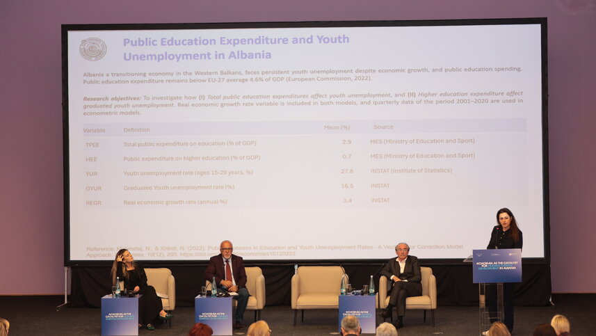 🔹 Assoc. Prof. Dr. Nevila Mehmetaj, nga Fakulteti i Ekonomisë, mori pjesë në panelin “Mungesat në investimet arsimore dhe ndikimi i tyre në punësim”. Tema e saj kërkimore, “Shpenzimet publike në arsim dhe normat e papunësisë tek të rinjtë – një qasje përmes modelit të korrigjimit të gabimeve vektoriale”, u përzgjodh për të kontribuar në debatin mbi mënyrën se si investimet arsimore ndikojnë në punësueshmërinë e të rinjve dhe zhvillimin e kapitalit njerëzor në Shqipëri.
