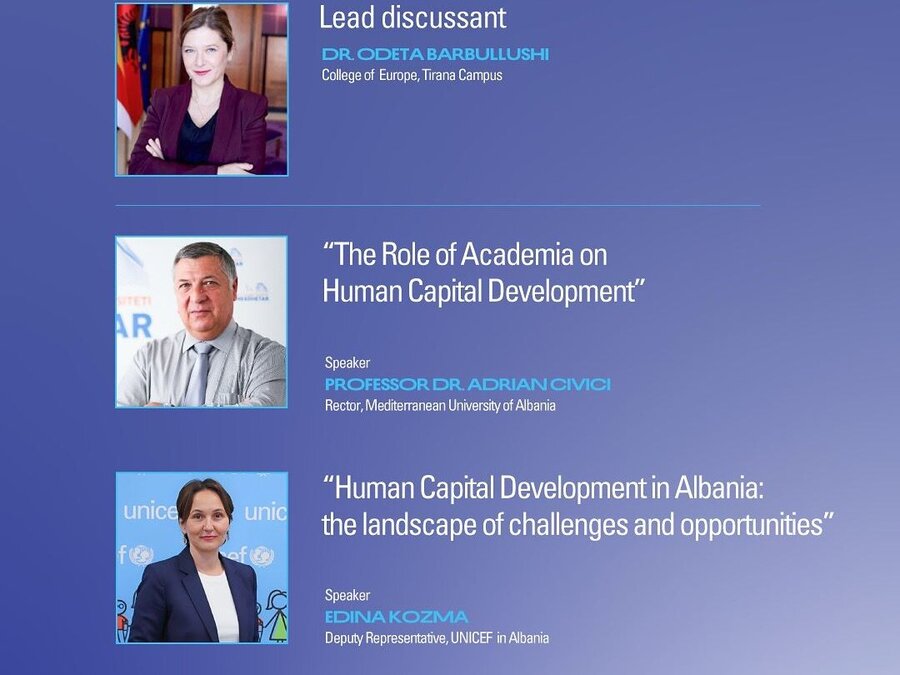 “Akademia si katalizator për zhvillimin e kapitalit njerëzor”, mbajtur më 24 tetor 2025, e organizuar nga UNICEF Albania në sallën Aula Magna të Kolegjit të Evropës (Kampi i Tiranës), me mbështetjen e Kombeve të Bashkuara dhe Bashkimit Evropian.