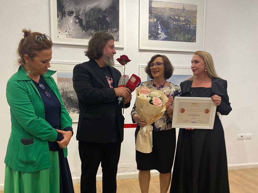 Në Galerinë e Arteve të Tiranës, gjatë ceremonisë së hapjes së Bienales Ndërkombëtare të Akuarelit, të organizuar nga VizarArt, piktorja e mirënjohur Ikbal Kalaja Bushati u vlerësua me këtë çmim prestigjioz .