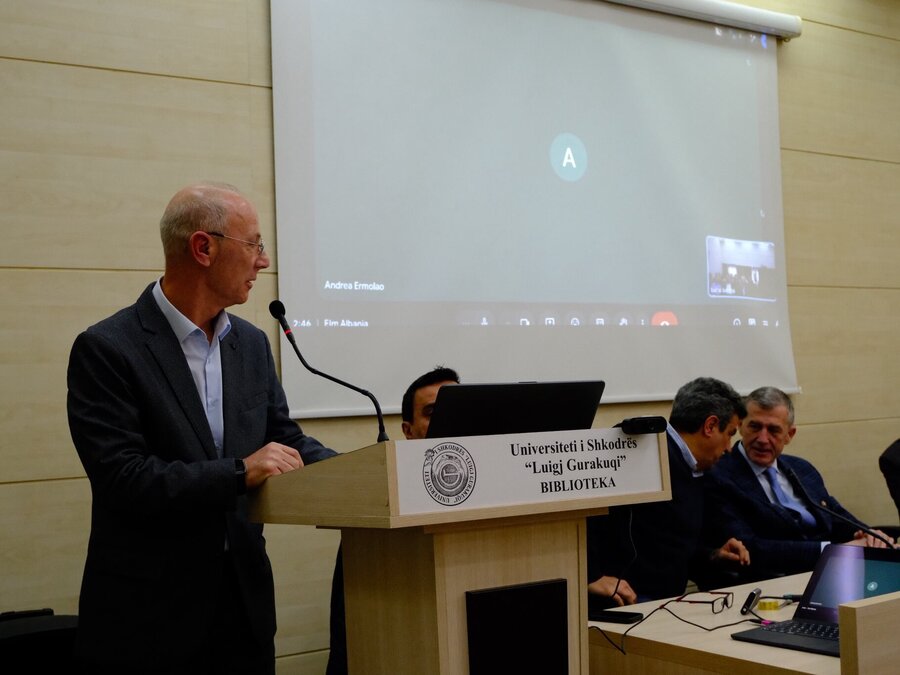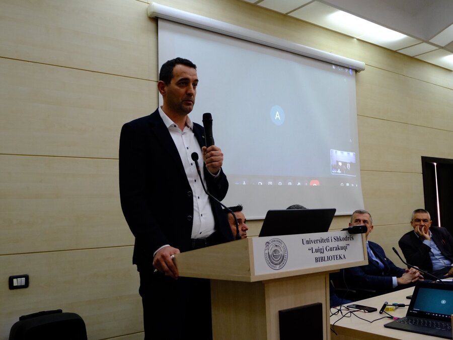 Në fjalën e tij, Rektori Gjuraj përshëndeti zhvillimin e kësaj konference, duke theksuar se Universiteti i Shkodrës “Luigj Gurakuqi” është gjithmonë i gatshëm të mirëpresë aktivitete të tilla. Ai vlerësoi bashkëpunimin me EIM si iniciativë amerikane, duke nënvizuar aspektin ndërdisiplinar të konferencës.
