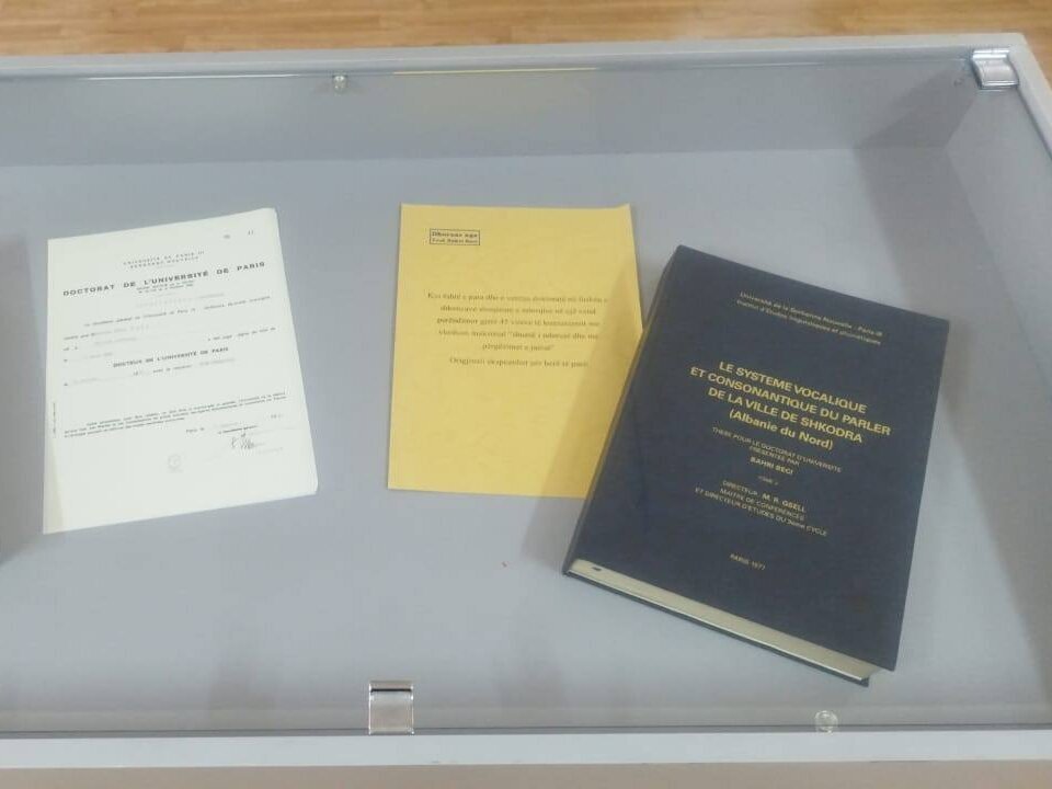 Nga të pranishmit tërhoqi vëmendjen dhurata me vlera të rralla, për bibliotekën dhe botën akademike Doktoratura " Le systeme vocalique et consonantique du parler de la ville de Shkodra", në dy volume, Paris 1977, mbrojtur në Universitetin e Parisit, Sorbonne Nouvelle, ku me 11 janar 1978, prof. Bahri Beci është vlerësuar, " TRES HONORABLE".