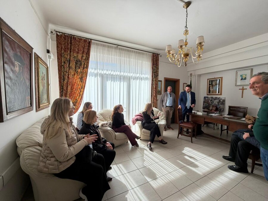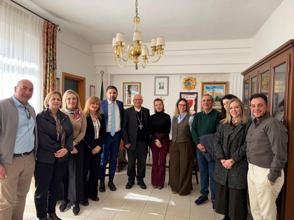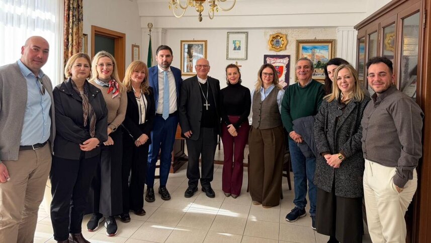 Delegacioni u prit nga Kryetari i Komunës, Francesco Leo, nga Imzot Angelo Masafra, si dhe nga përfaqësuesit vendorë Lorenzo Carmine Lonoce dhe Marisa Margherita.