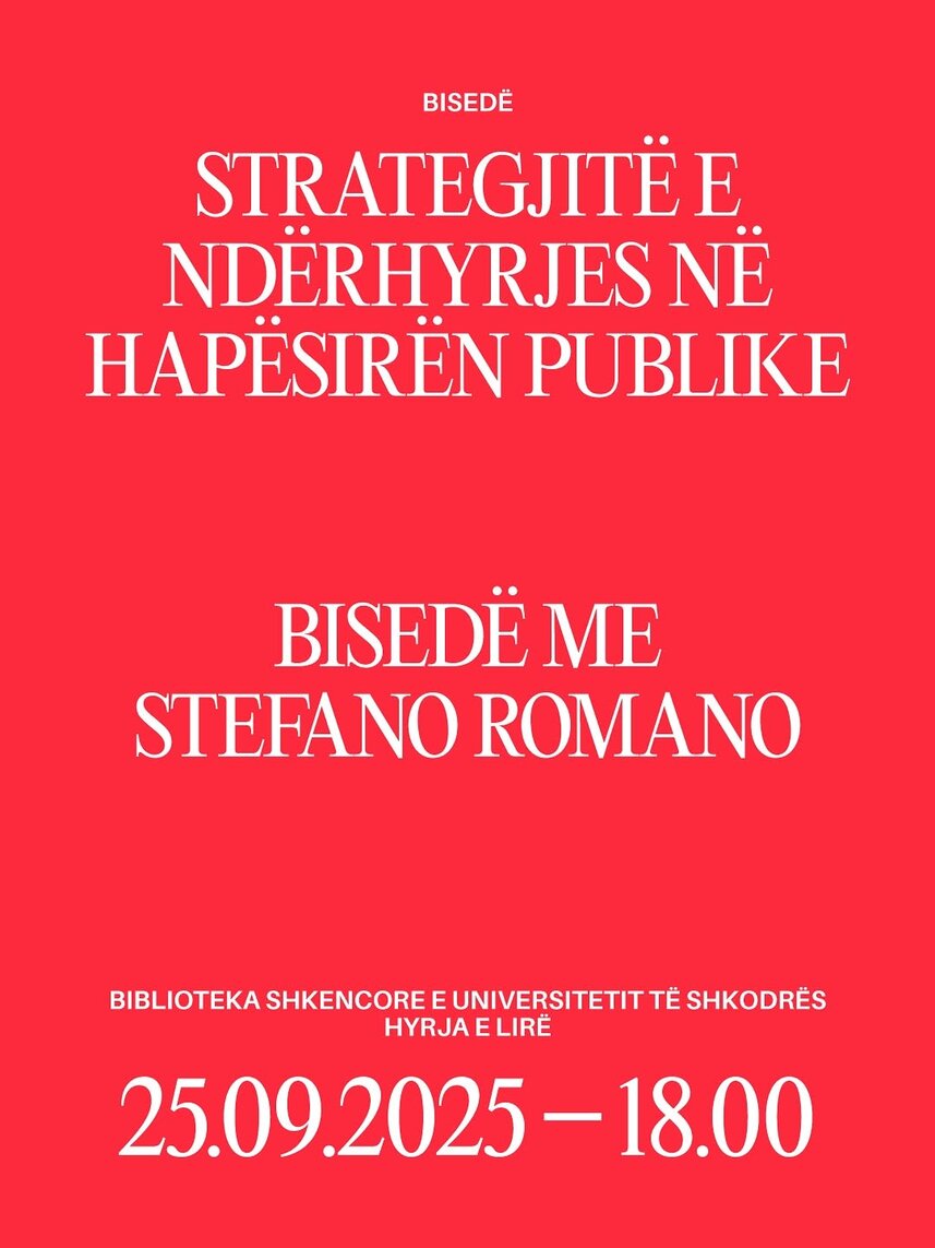 Bisedë me Stefano Romanon | 25.09 | 18:00 | Biblioteka Shkencore e Universitetit të Shkodrës “Luigj Gurakuqi”