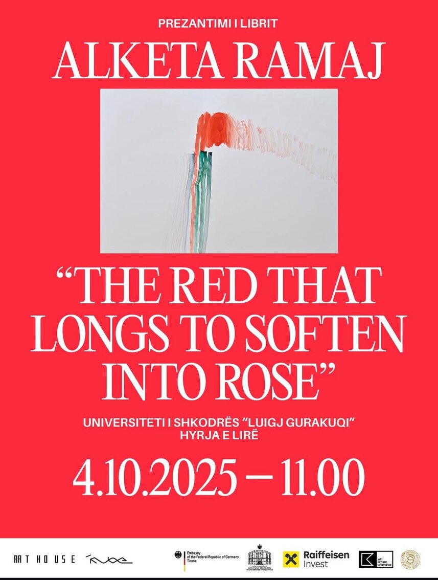 Programi publik i Homeward vijon më 4 tetor 2025, ora 11:00, me prezantimin e librit të artistes Alketa Ramaj, "The Red that Longs to Soften into Rose". Eventi do të zhvillohet në Bibliotekën e Universitetit të Shkodrës "Luigj Gurakuqi", ku autorja do të jetë në bashkëbisedim me Tea Çunin.