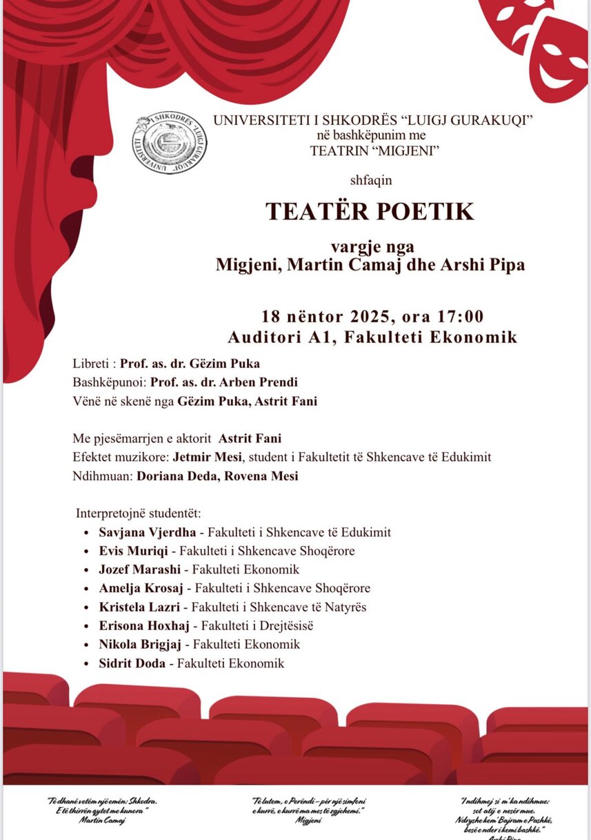 Studentët e Universitetit të Shkodrës “Luigj Gurakuqi” ju ftojnë në shfaqjen:
